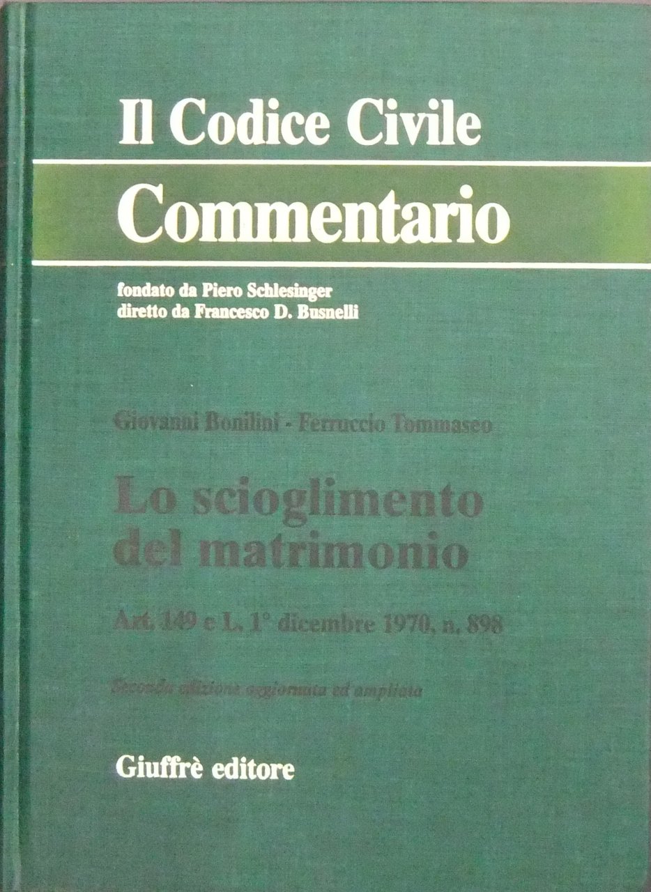 Lo scioglimento del matrimonio. Art. 149 e L. 1° dicembre 1970, n. 898 | Libri antichi e moderni | Bonilini Giovanni - Tommaseo Ferruccio