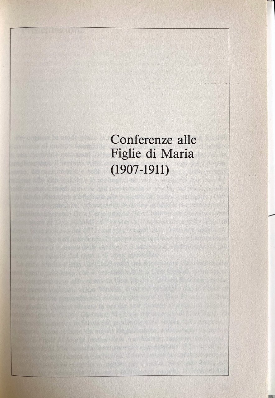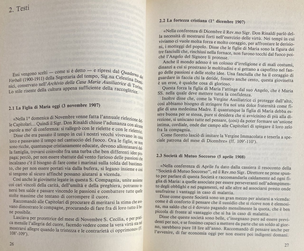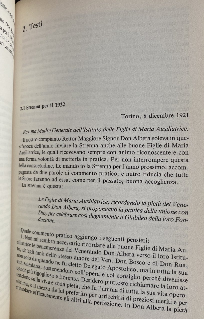 Soggetti: Religione Teologia Biografie Memorie Testimonianze don Bosco Salesiani Congregazione Famiglia Salesiana Eugenio Valentini Servo di Dio Don Filippo Rinaldi Agiografia Spiritualità Rettor Maggiore Vita Pensiero Santità Pedagogia Santi Beati Miracoli Ceria Castano Oratorio Ordini Ottocento Madre Clelia Genghini Don Michele Rua Regolamenti Azione Cattolica Cattolicesimo Fede Cristianesimo Regolamentino Figlie di Maria Immacolata Ausiliatrice Pia Associazione Purezza Apostolato Indulgenze Diari Scritti religiosi Opere Beatificazione Devozione Adorazione Educazione Giovani Laici Comunicazione sociale Congregazioni Storia ecclesiastica Chiesa Vocazione Formazione Spagna Valdocco Testi Società Mutuo Soccorso Moderazione Modestia Carità Feste 1 Primo Maggio Donna Immaginazione Lezioni Insegnamento Lettere Epistolario Sistema preventivo Ragazzi Educatori Zelatrici Conferenza Preghiera Povertà secolare Castità Obbedienza Spirito Mortificazione Immolazione Meditazione S. Francesco di Sales Purificazione Distacco Cose terrene Ex-Allieve Direttrice Relazioni Esterni Ragazze Catechismo Catechesi Strenna Udienza Pio XI Indulgenza Lavoro Giubileo d'oro Costituzioni Missioni Cooperatori Dieci comandamenti Tradizioni Pietro Ricaldone Candela Tirone Battista Gasbarri Arnold Smeets Thomas De Mattei Paolo Albera Giovanni Cagliero Tomasetti Giuseppe Vespignani Caterina Daghero Luisa Vaschetti Suor Angela Bracchi Gaido Suore Missionarie Consolata Grazia Virtù Croce Umiltà Mitezza Servire Gesù Da mihi animas Bibliografia Riferimento Libri rari fuori catalogo Saggi Fonti processuali Archivistiche Positio super Causae Introductione Taurin Canonizzazione Scripta Larescella Successore Antonio Socci Carisma Culto Martirio Agiografie Asilo Attività Bronte Capitolari Case Catania Cavaglià Cronaca Chieri Convitti Costituzione Istituto Documentazione Donne Educande Fanciulle Femminile Fondazioni FMA Francica Giaveno Insegnanti Ispettorie Maestre Marenco Mazzarello Mornese Nizza Monferrato Novecento Novizie Operaie Orfane Piemonte Piemontese Sicilia Scuola Superiora Trecastagni Vallecrosia Verbali Adunanze Vescovi Vestizione Voti Luigi Comollo Ordine francescano Francescani Monaci Istituti cattolici Pedagogisti Cafasso Margherita Domenico Savio Magone Besucco Leonardo Murialdo Bollettino Horas non numero nisi serenas Religion Theology Biographies Memoirs Testimonies Salesians Congregation Salesian Family Servant of God Hagiography Spirituality Rector Major Life Thought Holiness Pedagogy Blessed Saints Miracles Oratory Orders Mother Regulations Catholic Action Catholicism Faith Christianity Regulation Daughters Mary Immaculate Christians Pious Association Purity Apostolate Indulgences Diaries Religious Writings Works Beatification Devotion Adoration Education Youth Lay People Social Communication Congregations Ecclesiastical History Church Vocation Formation Spain Texts Society Mutual Aid Moderation Modesty Charity Feasts May Day Woman Imagination Lessons Teaching Letters Epistolary Boys Educators Zealots Conference Prayer Secular Poverty Chastity Obedience Spirit Mortification Immolation Meditation St. Francis Purification Detachment Earthly Former Students Director External Relations Girls Catechism Catechesis Pius Indulgence Work Golden Jubilee Constitutions Missions Cooperators Commandments Traditions Missionary Sisters Grace Virtue Cross Humility Gentleness Serve Jesus Bibliography Reference Rare books out of print Essays Process sources Archival Canonization Successor Charisma Cult Martyrdom Hagiographies Nursery Activities Houses Chronicle Boarding schools Constitution Institute Documentation Women Boarders Female Foundations Teachers Inspectorates Nice Nineteenth Twentieth Century Novices Workers Orphans Piedmont Piedmontese Sicily High School Minutes Meetings Bishops Vesting Vows Order Franciscans Monks Institutes Pedagogists Bulletin