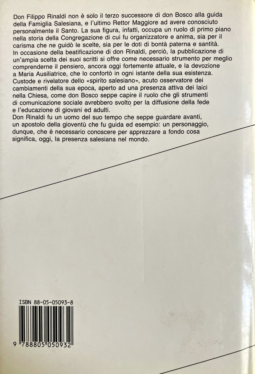 In occasione della beatificazione di don Rinaldi, perciò, la pubblicazione di un'ampia scelta dei suoi scritti si offre come necessario strumento per meglio comprenderne il pensiero, ancora oggi fortemente attuale, e la devozione a Maria Ausiliatrice, che lo confortò in ogni istante della sua esistenza.