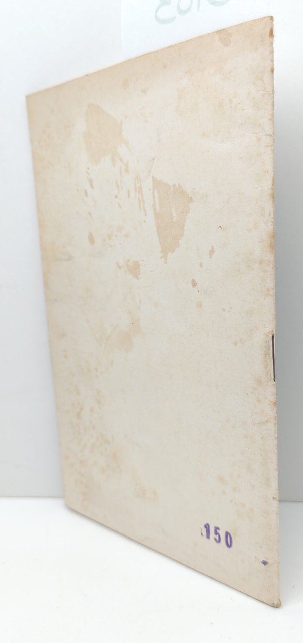 Legatura morbida editoriale con fioriture diffuse, vedere immagini, una piega all'angolo superiore alla quarta di copertina, pagina interne leggermente brunite al margine esterno, alcune fioriture che non vanno a disturbare la lettura, numero pagine 39 dimensioni cm 17 x 11,7