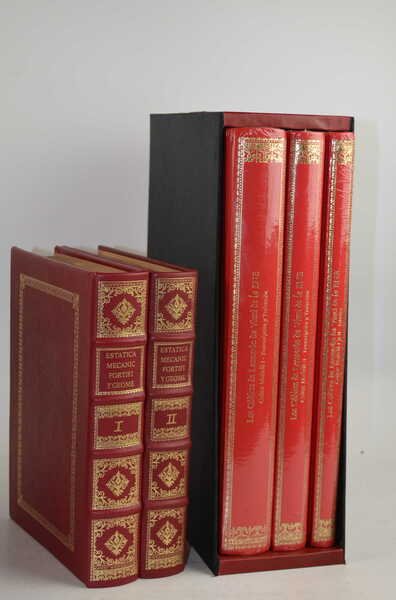 Cinque volumi di cui due di cm. 22 con i facsimili dei codici + 3 di cm. 32 di commento. Legature editoriali in pelle e tela rossa con titoli in oro. Ottimo stato di conservazione. Edizione a tiratura limitata. E' presente il cofanetto del commentario, ma non dei due volumi di facsimile. Manca inoltre il modellino allegato.