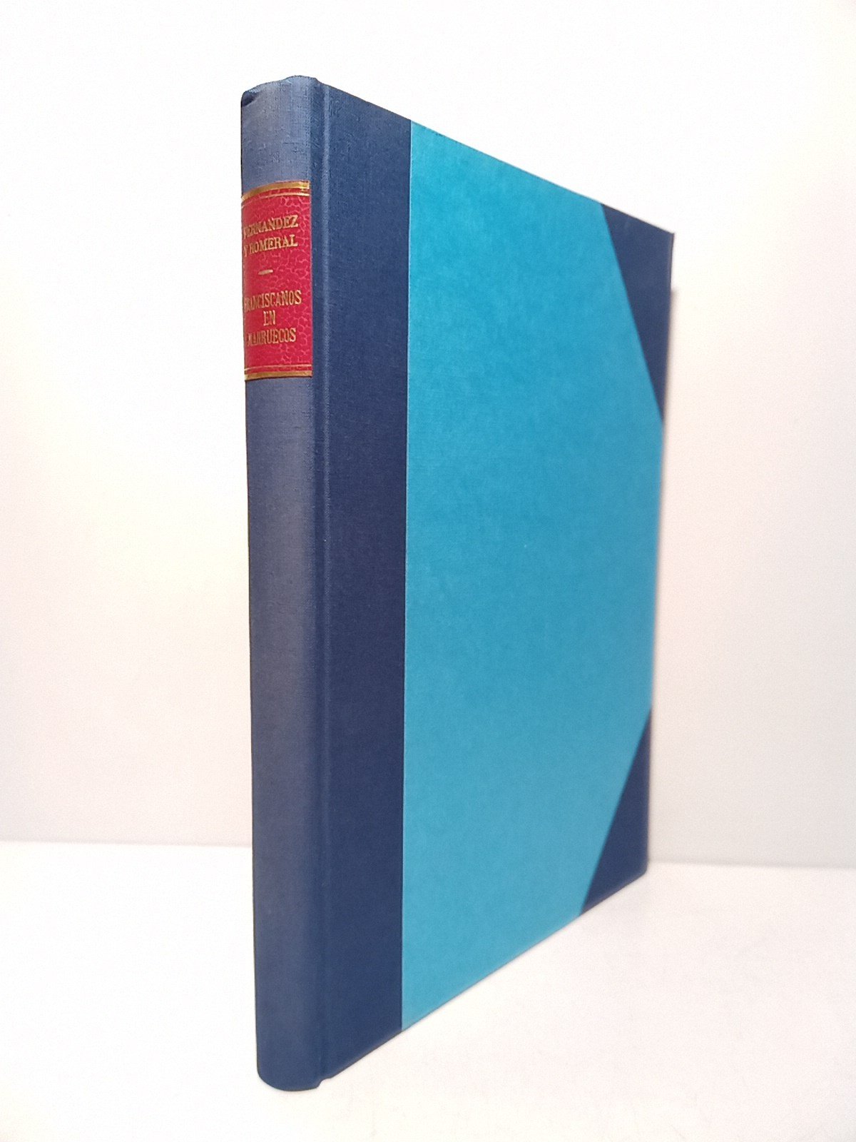 [PRIMERA EDICION].- Tánger: Tip. de la Misión Católica, 1921.- XV, 442 p.: Profusión de ilustraciones fotográficas en negro, muchas con vistas de ciudades y calles, otras de corte socio cultural y al final una gran lámina plegada de 0,53 x 0,62 m. con tres vistas panórámicas fotográficas de Tetuán, Tánger y Larache; in folio mayor (31,5 x 22,5 cm); Tela Puntas nueva, tejuelo, conserva las cubiertas originales.- MUY RARO.* Las cubiertas que conserva con pequeños desperfectos y los márgenes externos de algunas hojas con mínimos visos de óxido. La portada tiene una pequeña restauración de un desgarro en el margen inferior, justo debajo del pie de imprenta.Por lo demás en buen estado. Los franciscanos españoles fueron protagonistas desde la Baja Edad Media en la misión marroquí, vinculados sobre todo a las provincias de Castilla y Andalucía. Fue famoso martirio de Marrakech (1220), en el que cinco franciscanos (Bernardo, Pedro, Otón, Accursio y Adyuto) por predicar públicamente el cristianismo en Marrakech, fueron ejecutados por orden del califa al-Mustansir. Más tarde se les encomendó la Custodia de Marruecos bajo patronazgo de la Corona española. Actuaron como capellanes, diplomáticos y protectores de cautivos cristianos. Su presencia moderna se orienta a la convivencia y asistencia social. MARRUECOS Y SAHARA ESPAÑOL