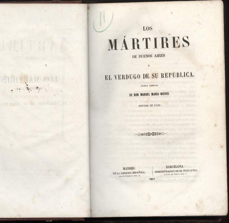 LOS MARTIRES DE BUENOS AIRES o el verdugo de su Republica | Libri antichi e moderni | Nieves Don Manuel Maria