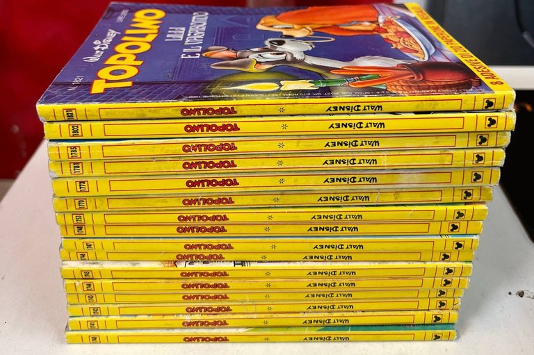 Lotto 16 fumetti Topolino: comprende i numeri da 1740 a 1748 + 1753-1781-1785-1802-1821 . Condizioni accettabili. Libretti con ombrature e segni d'uso su copertine e lievi abrasioni ai dorsi. Tagli con bruniture. Pagine in buono stato in generale, con buona leggibilità ancora. paperback s.n. Mediocre (Poor) .