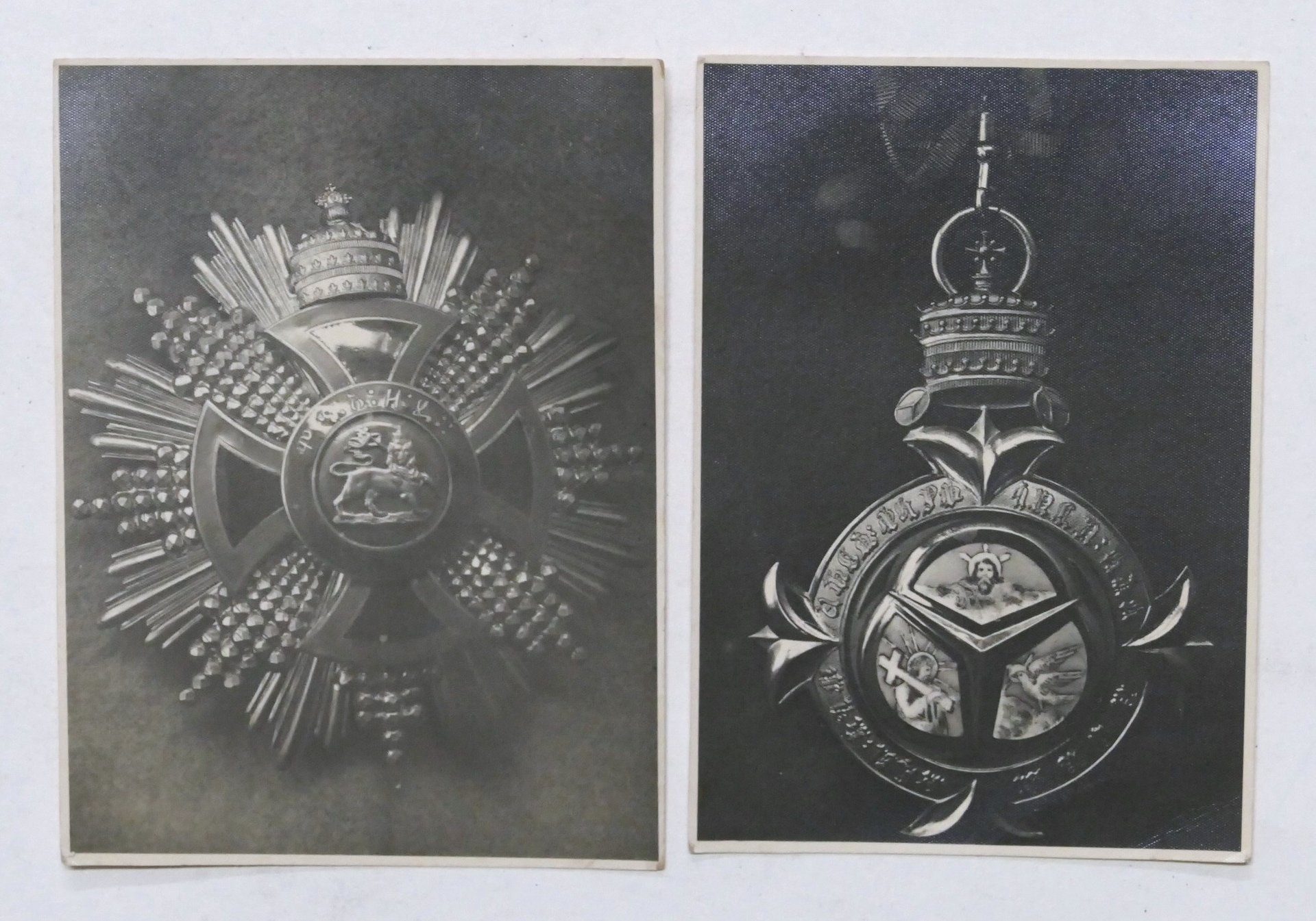 Lotto 2 fotografie che raffigurano Medaglie Onorificenze Eritrea - anni '30 Dimensioni: 8 x 11 cm ca. Condizioni generali buone.