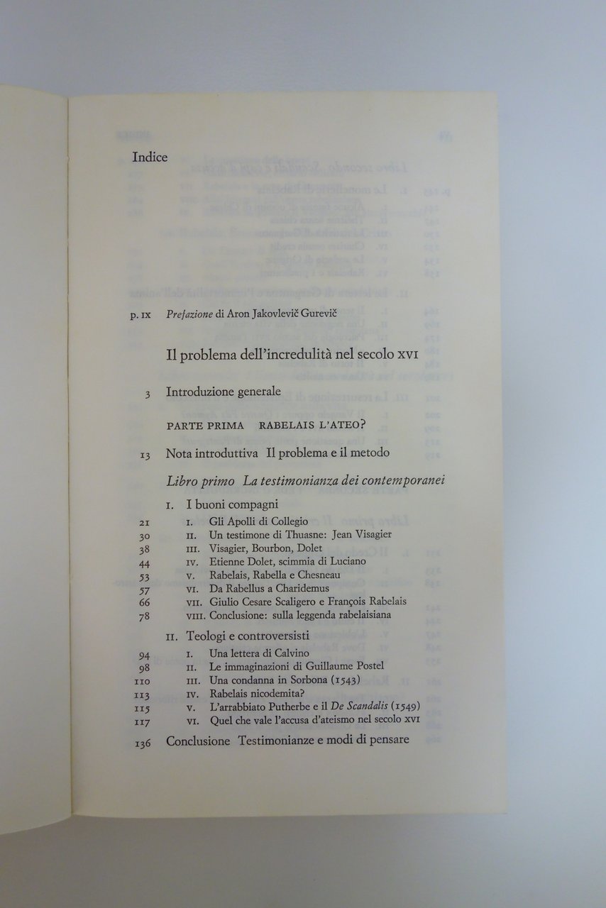 Lucien Febvre Il Problema dell'Incredulità nel XVI Secolo Rabelais Einaudi 1978 | Libri antichi e moderni |