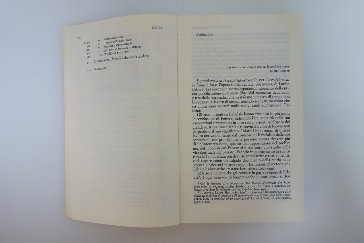 Lucien Febvre Il Problema dell'Incredulità nel XVI Secolo Rabelais Einaudi 1978