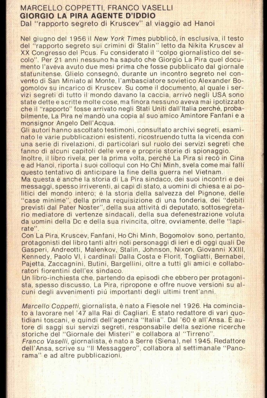 M. Coppetti-F. Vaselli - Giorgio La Pira, agente d'Iddio. Feltrinelli 1978 | Libri antichi e moderni | Coppetti, Vaselli, ,Coppetti, Vaselli