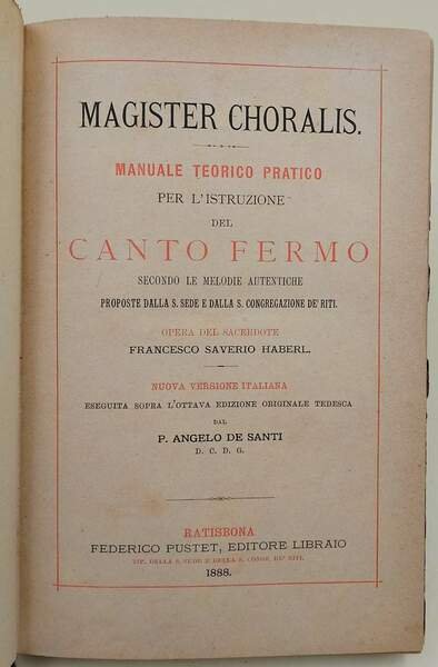 MAGISTER CHORALIS-MANUALE TEORICO PRARICO PER L'ISTRUZIONE DEL CANTO FERMO(1888) | Libri antichi e moderni | Haberl, Francesco Saverio- De Santi , Angelo