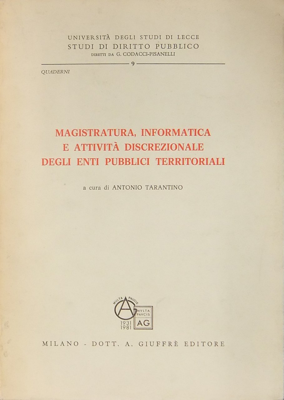 Magistratura informatica e attività discrezionale degli Enti pubblici territoriali | Libri antichi e moderni | Tarantino Antonio (A C. Di), Tarantino Antonio