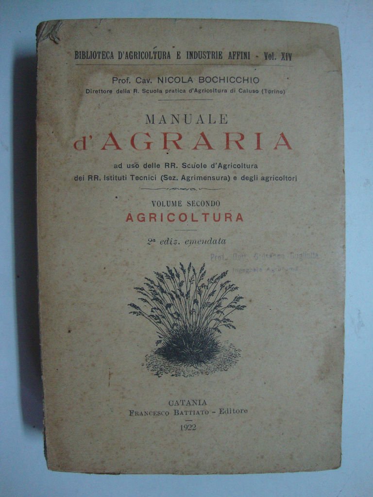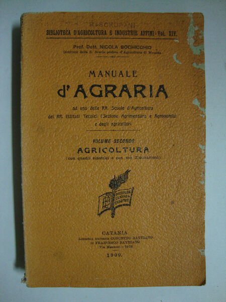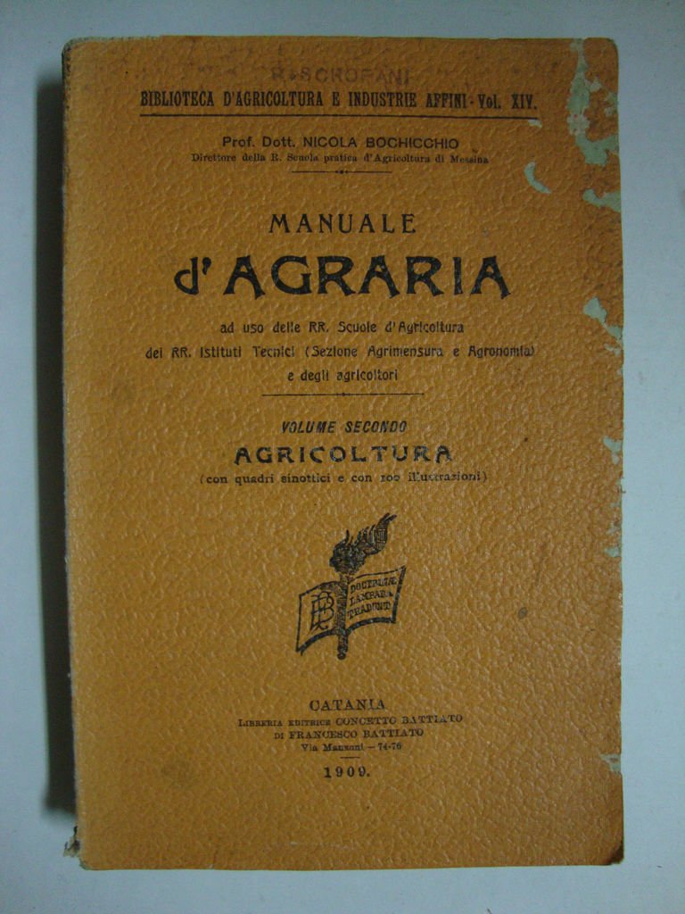 Manuale d'agraria (ad uso delle RR. Scuole d'Agricoltura, dei RR. Istituti Tecnici (sez. agrimensura) e degli agricoltori) | Libri antichi e moderni | Bochicchio Nicola