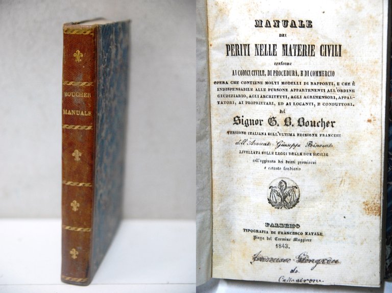 boucher manuale dei periti nelle materie civili conforme ai codici civile di procedura e di commercio. tipogr. natale palermo 1843 .