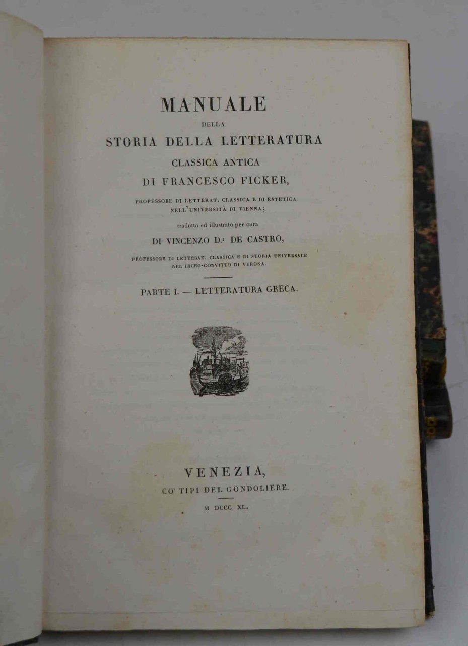 Manuale della storia della letteratura classica antica... tradotto ed illustrato per cura di Vincenzo De Castro. | Libri antichi e moderni | FICKER FRANCESCO.