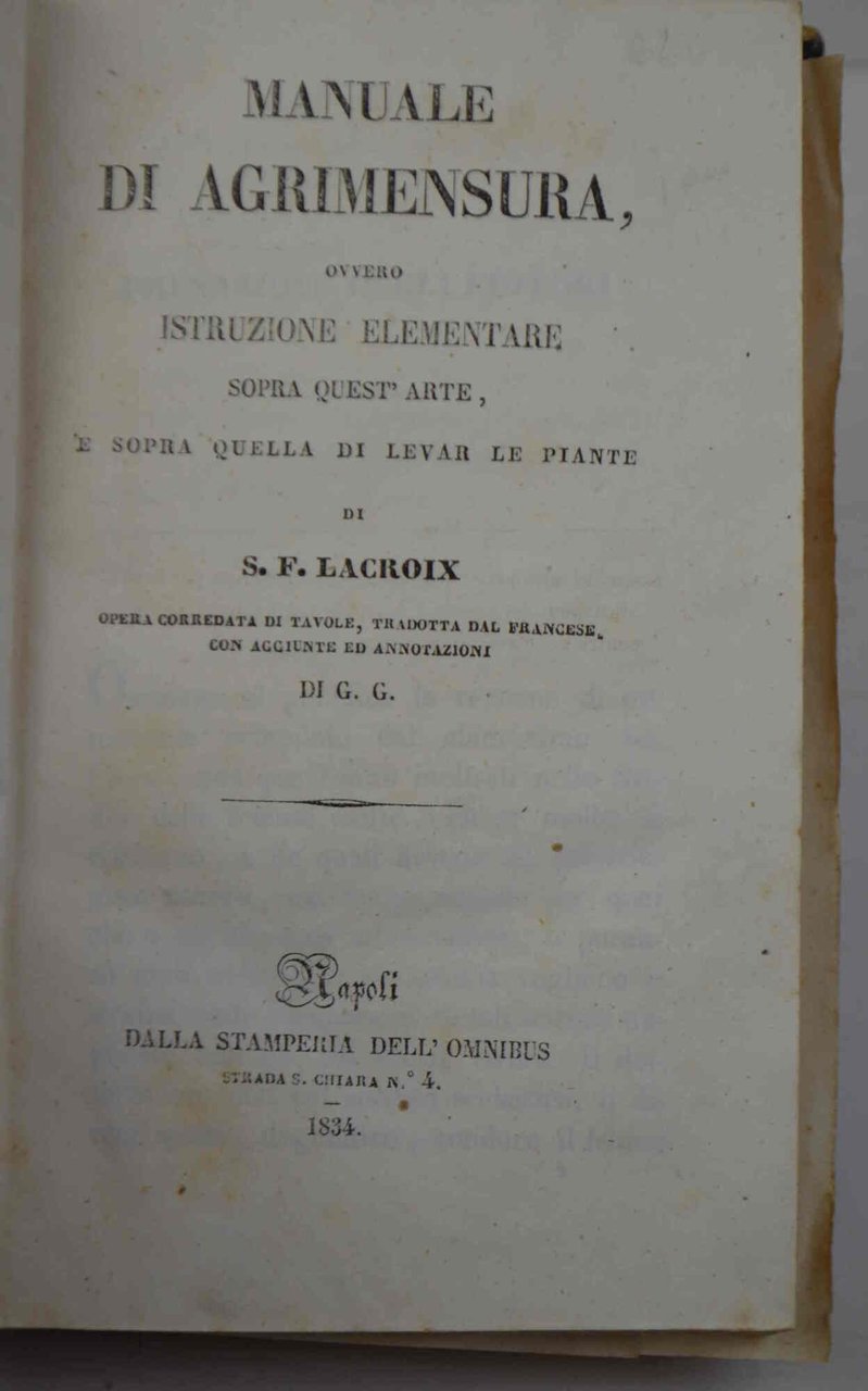 Manuale di agrimensura ovvero istruzione elementare sopra quest'arte, e sopra quella di levar le piante... | Libri antichi e moderni | LACROIX S.F.