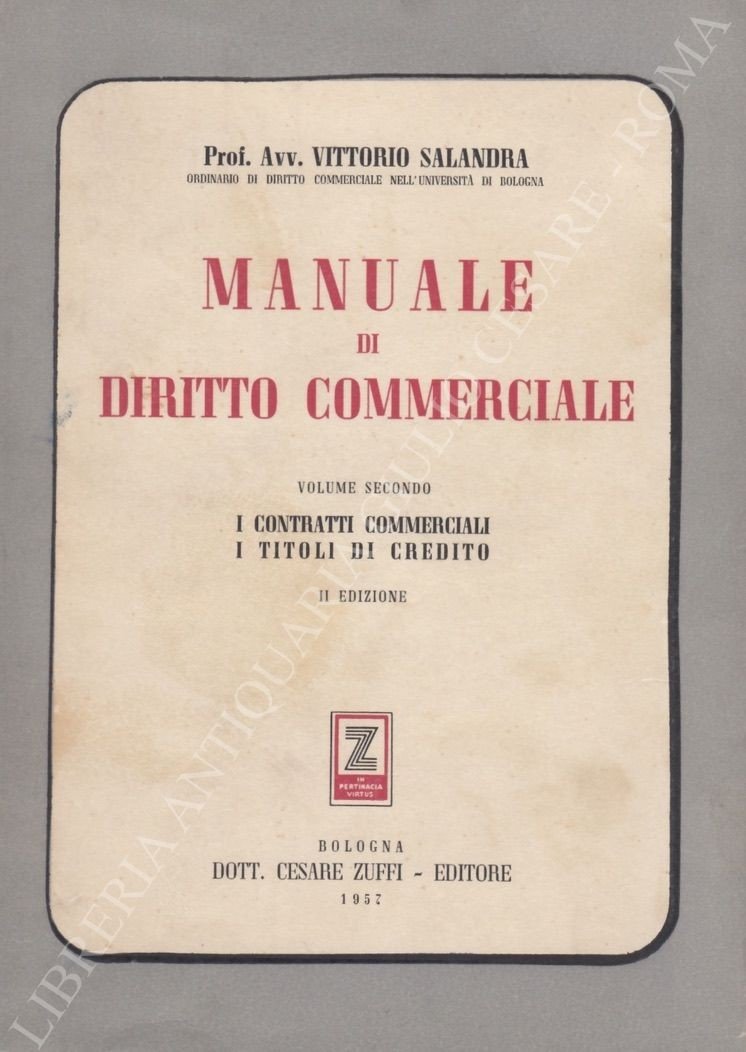 Manuale di diritto commerciale. Vol. I - L'impresa commerciale. Le società commerciali. Vol. II - I contratti commerciali. I titoli di credito | Libri antichi e moderni | Salandra Vittorio