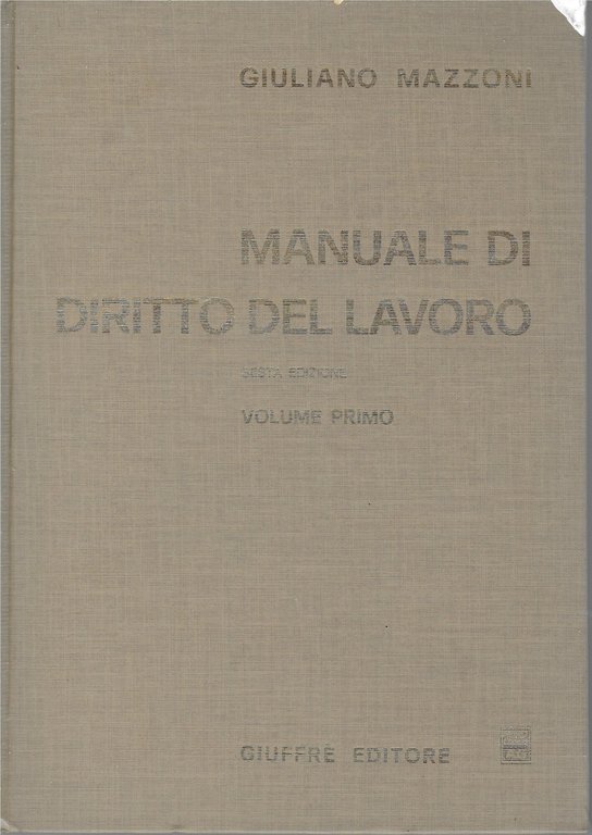 MANUALE DI DIRITTO DEL LAVORO VOL. primo | Libri antichi e moderni | GIULIANO MAZZONI, ,GIULIANO MAZZONI