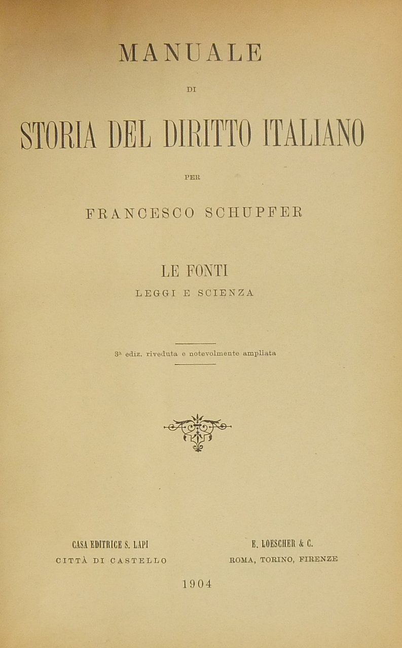 Manuale di storia del diritto italiano. Le fonti leggi e scienza | Libri antichi e moderni | Schupfer Francesco