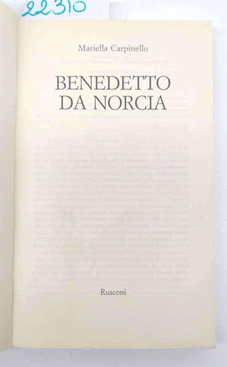 Mariella Carpinello Benedetto da Norcia Rusconi 1° edizione 1991