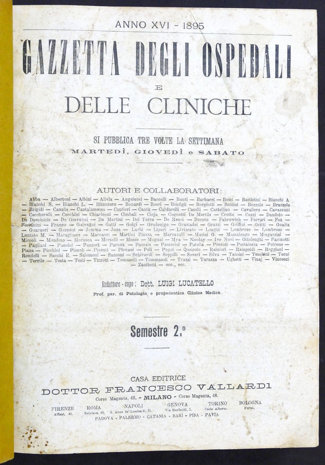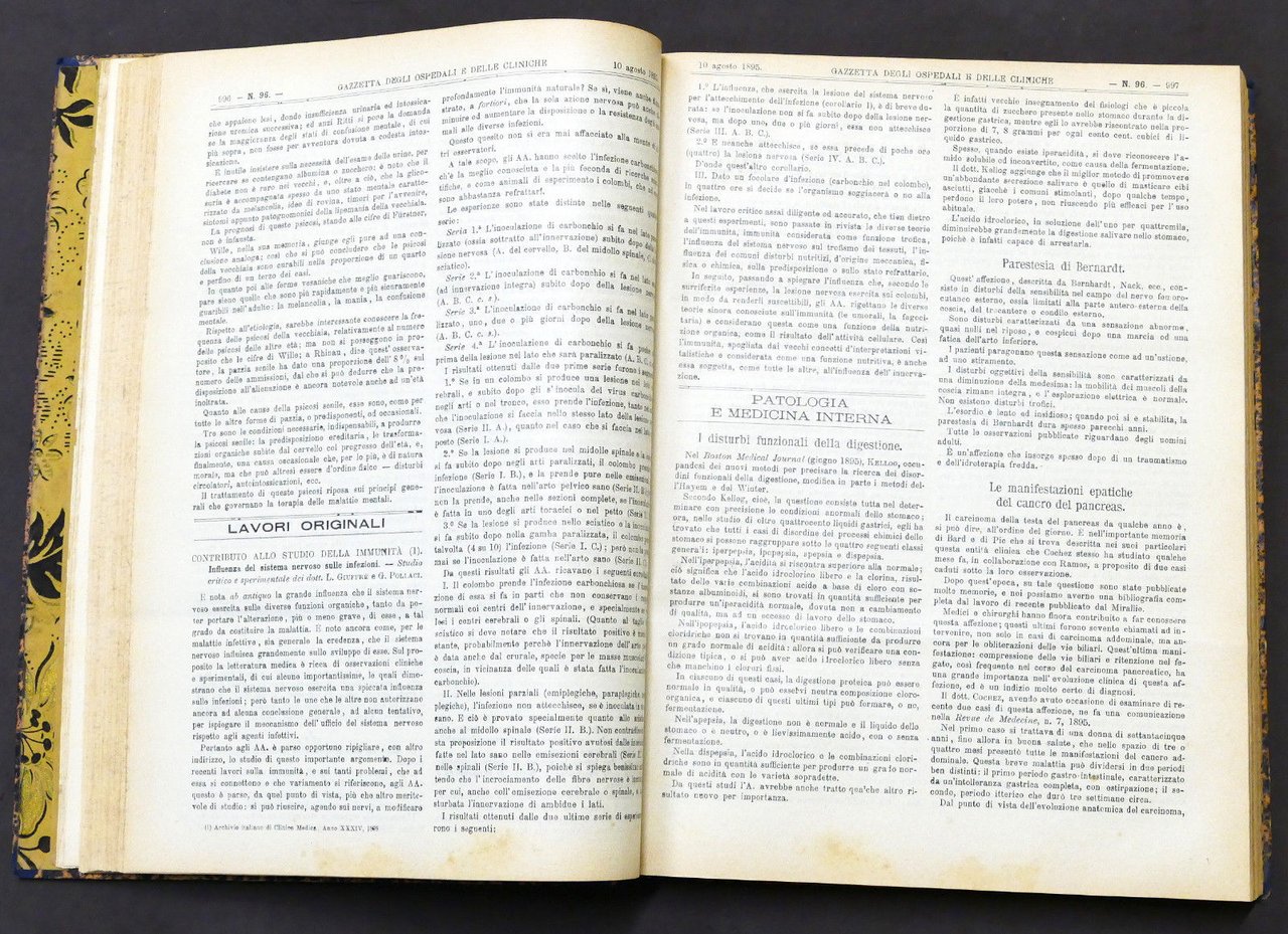 Medicina - Gazzetta degli ospedali e delle cliniche - 2° semestre 1895 - RARO | Libri antichi e moderni |