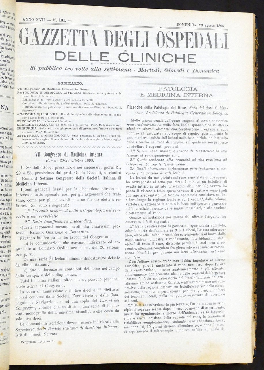 Medicina - Gazzetta degli ospedali e delle cliniche - 2° semestre 1896 - RARO | Libri antichi e moderni |