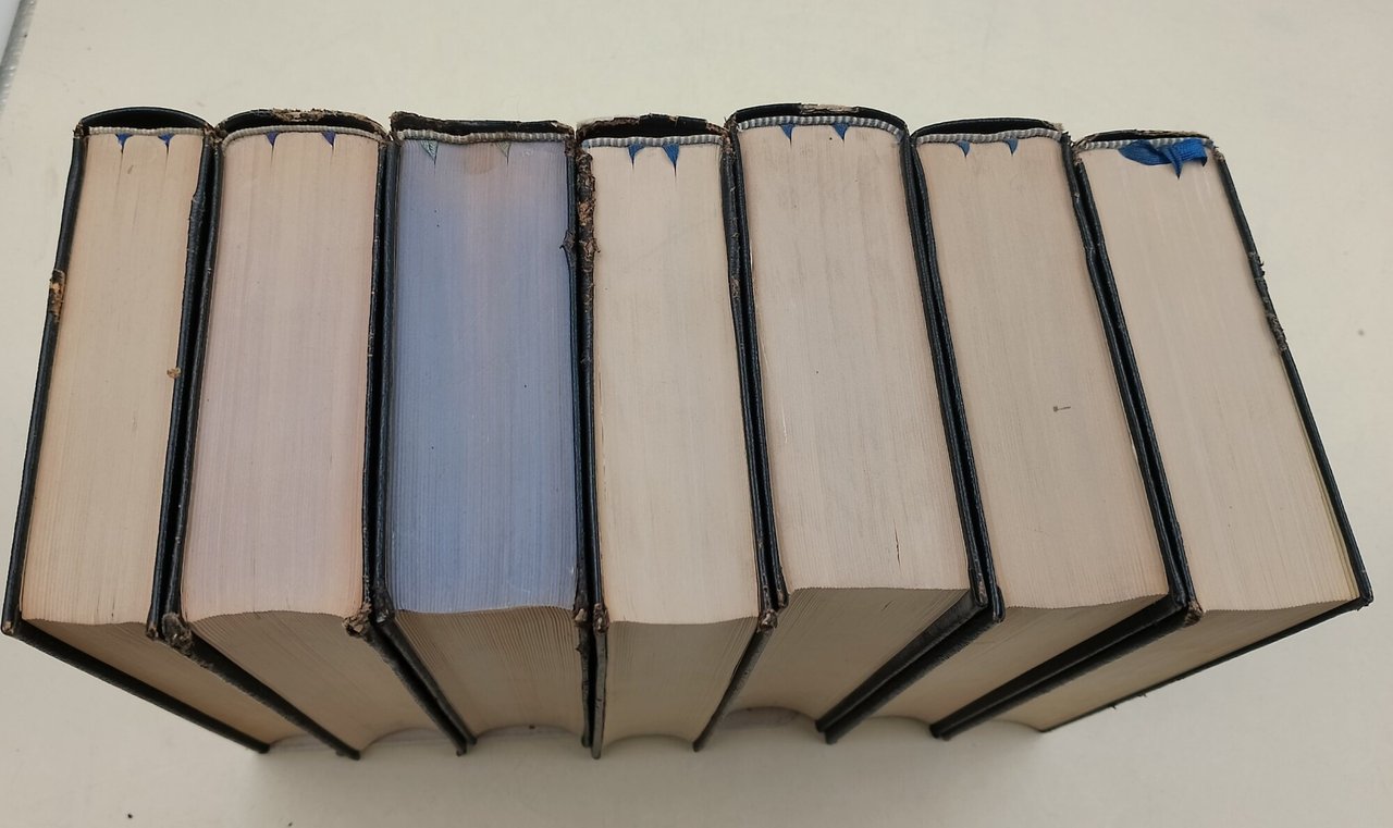 7 tomi, leg. ed, pp. 1000/1500 cad. circa, dal vol I al vol VII; dorso del I vol leggermente sbiatito e lievi abrasioni lungo la costa, vol. IV , rottura alla testa del dorso lungo la costa, vol. V, dorso danneggiato lungo la costa ad entrambe i lati, vol. VI, dorso parzialmente staccato alla testa, restanti in buono stato, tagli leggermente polverosi,interni buoni. ***Due to bureaucratic reasons, books dated over 70 years old cannot be immediately exported, please contact us before placing the order.***