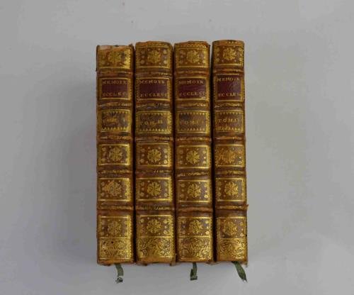 Quattro volumi di cm. 16,5, pp. 2.000 ca. complessive. Legatura coeva in piena pelle, dorsi a nervi con titoli e fregi in oro. Tagli rossi. Piccole mancanze alle cuffie, peraltro ben conservato.