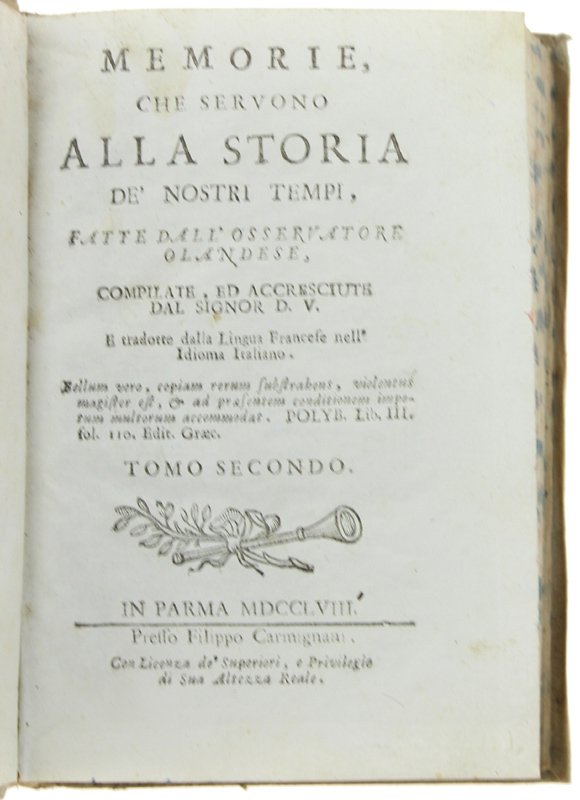 MEMORIE, CHE SERVONO ALLA STORIA DE' NOSTRI TEMPI, fatte dall'osservatore olandese… Tomo secondo. | Libri antichi e moderni | Moreau Jacob Nicolas.