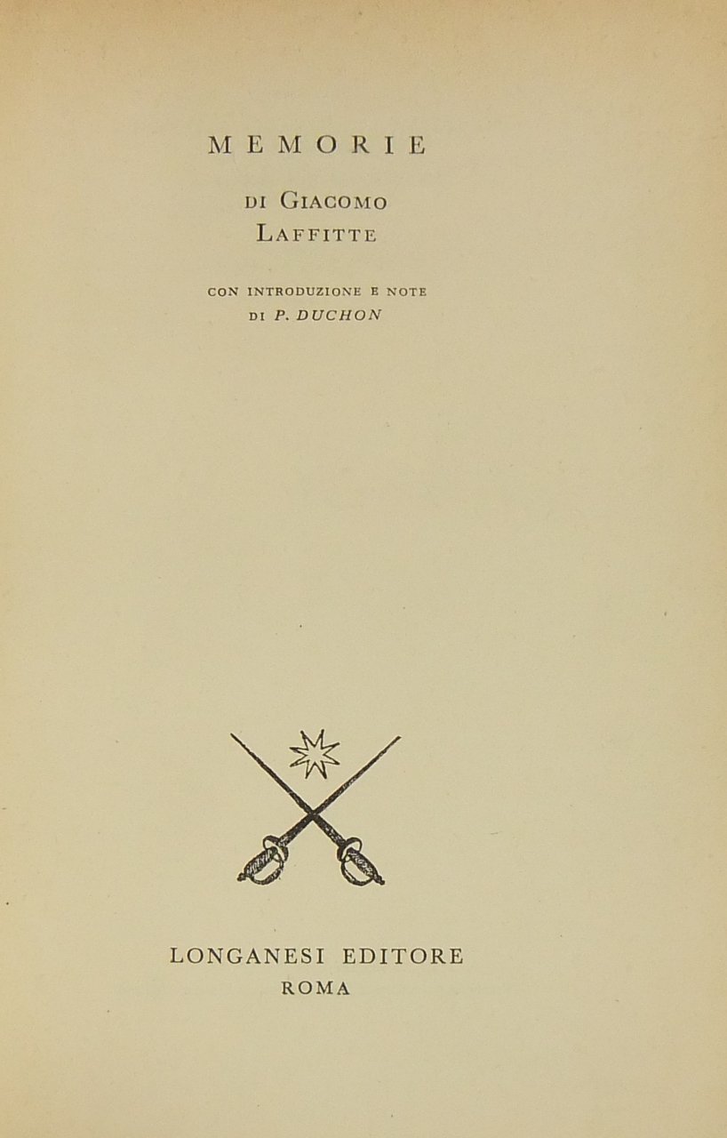 Memorie. Con introduzione e note di P. Duchon | Libri antichi e moderni | Laffitte Jacques