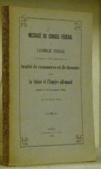 Message du Conseil fédéral à l’Assemblée fédérale conernant le traité additionnel au traité de commerce et de douane entre la Suisse et l’Empire allemand conclu le 12 novembre 1904. Traité additionnel au Traité de commerce et de douane entre la Suisse et l’Empire allemand du 12 Novembre 1904. | Libri antichi e moderni |