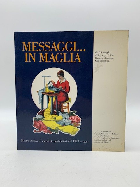 In 8, cm. 22 x 24, pp. 67 + (5), con numerose illustrazioni a colori nel testo che risproducono i manifesti pubblicitari di maglieria e calzetteria. Brossura editoriale illustrata. In ottimo stato. Catalogo della omonima mostra, Milano, Castello Sforzesco, maggio - giugno 1986 promossa dall'Associazione Italiana Produttori Maglierie e Calzetterie con il patrocinio del Comune di Milano. Presentazione di Ugo Michelotti. Testi di Giampaolo Fabris, Paolo Lombardi, Eugenio Manzato.