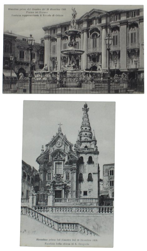 MESSINA PRIMA DEL DISASTRO DEL 28 DICEMBRE 1908: PIAZZA DEL DUOMO - FONTANA TRIONFO DI ORIONE + FACCIATA CHIESA S.GREGORIO (2 cartoline antiche) | Libri antichi e moderni |