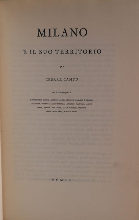 MILANO E IL SUO TERRITORIO. - Con la collaborazione di Bartolommeo Catena ... et al.!