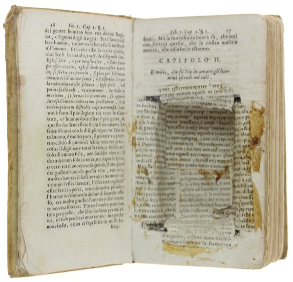 (Codice ZZ/0215) Nello spessore del volume (5 cm) è stata anticamente ricavata una nicchia di cm 7,5x5 circa, profonda cm 2,7. Sono state lasciate le prime 16 pagine con frontespizio e bella marca tipografica. Si tratta dell'opera "PRODIGIO DEL DIVINO AMORE di Gio.Eusebio Nieremberg: edita a Venezia nel 1700, rilegato in pergamena, con cerniera in parte fessurata e vecchia etichetta. Segni d'uso e del tempo. Un oggetto veramente sorprendente. ~~~ SPEDIZIONE IN ITALIA SEMPRE TRACCIATA