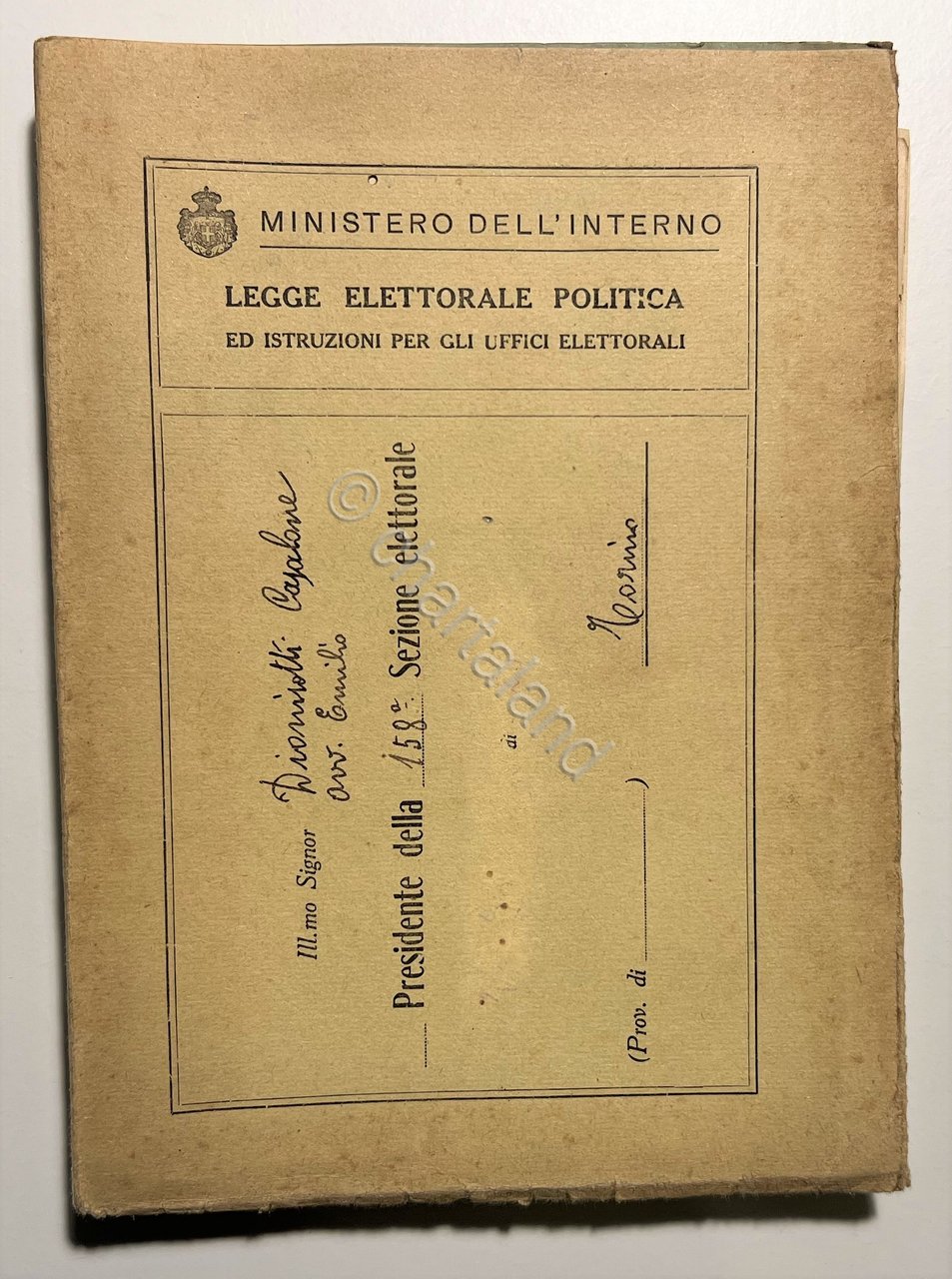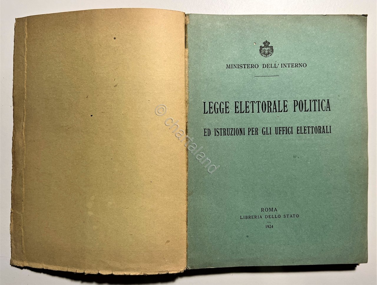 Ministero dell'Interno - Legge Elettorale Politica - ed. 1924 Ultime Elezioni | Libri antichi e moderni |