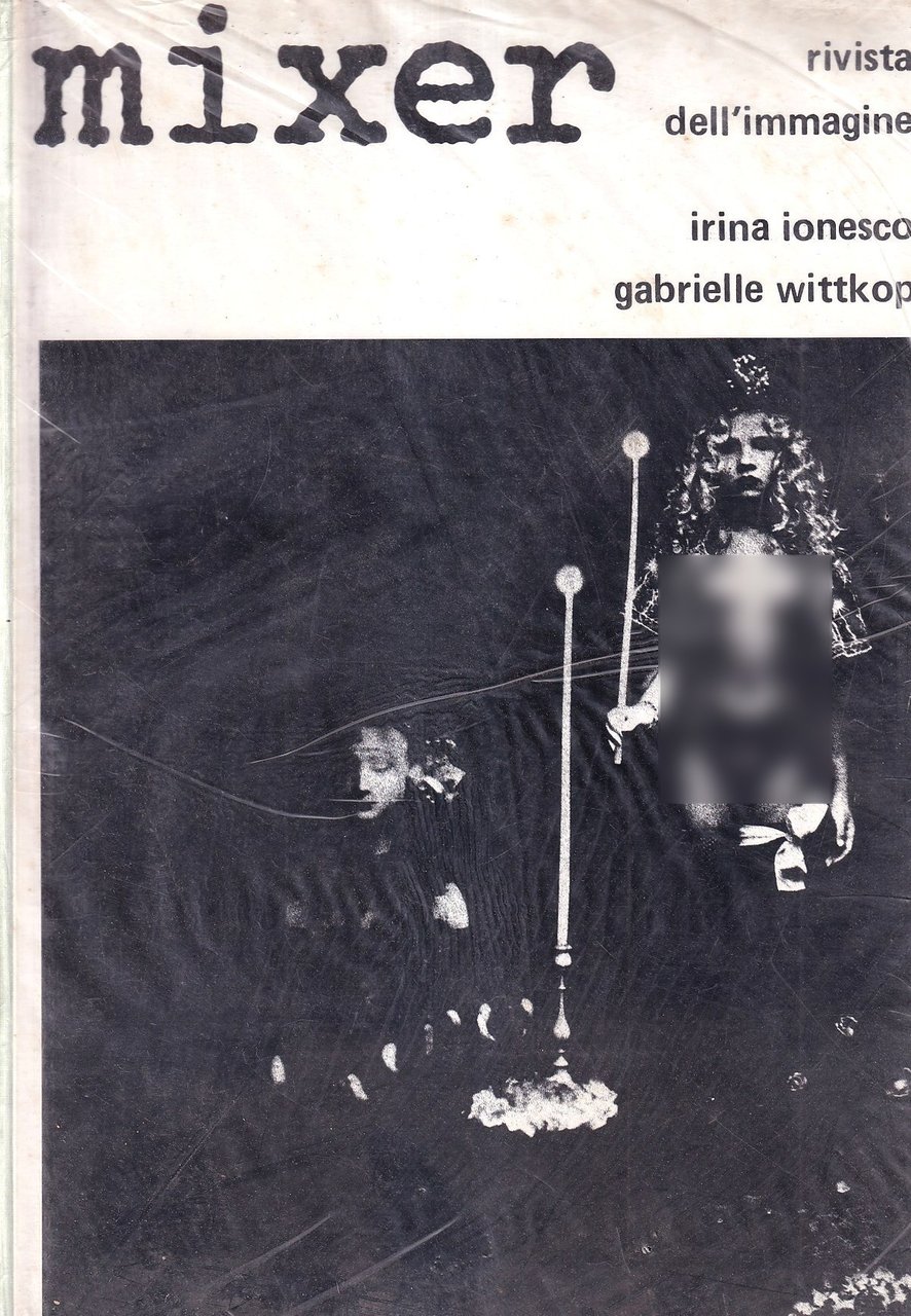 Primo numero della rivista "Mixer", periodico artistico italiano: numero con le fotografie di Irina Ionesco tratte dalla pubblicazione "Litanie per un'amante funebre", corredate da scritti di Gabrielle Wittkop -- Brossura editoriale con copertina figurata in bianco e nero, 96 pagine con circa 60 illustrazioni anche a piena pagina. Opera nella sua confezione trasparente originale. RARO