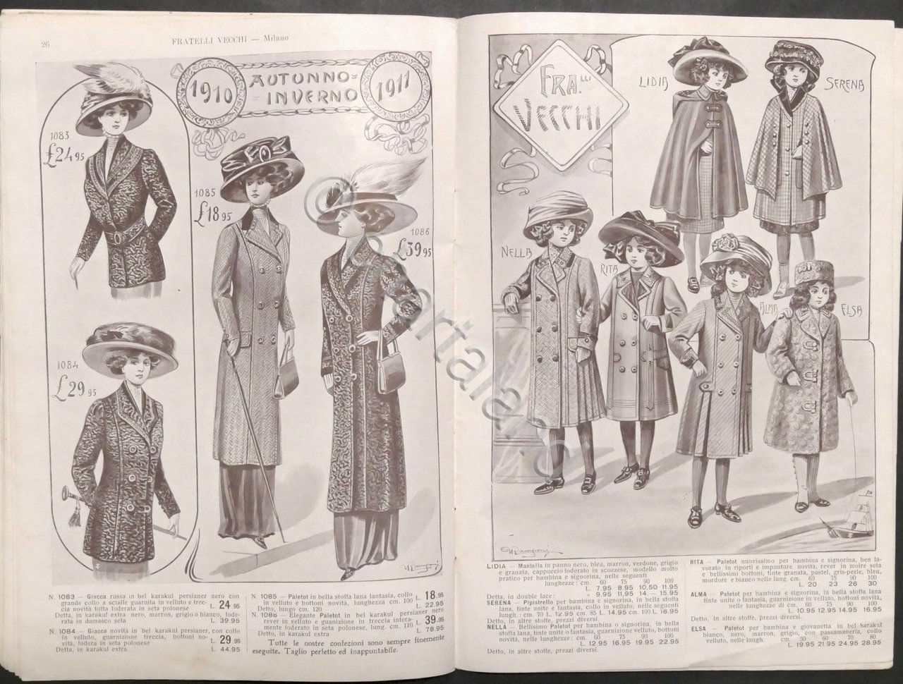 Moda - F.lli Vecchi - Milano - Catalogo novit&agrave, autunno / inverno 1910 - 1911
