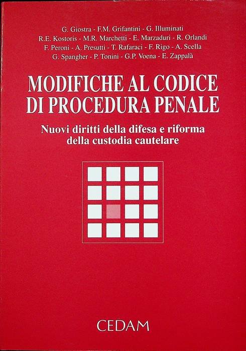 Modifiche al Codice di procedura penale: nuovi diritti della difesa e riforma della custodia cautelare. | Libri antichi e moderni | Giostra, Glauco.