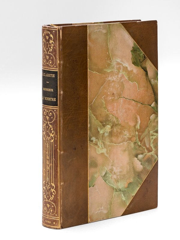 1 vol. grand in-8 reliure demi-veau à coins brun, dos lisse orné en long, filet doré en mors et coins, tête dorée, couvertures conservée, reliure signée de Affolter, Collection des Chefs-d'Oeuvre du roman contemporain, Maison Quantin, Paris, s.d. [ 1888 ], XVI-436 pp. avec 10 planches hors texte Ce roman à de nombreuses analogies avec le fameux "Numa Roumestan" qu'Alphonse Daudet publiera ultérieurement. Dans ce "roman parisien", Jules Claretie aurait notamment décrit sous les traits du ministre Sulpice Vaudray le député des Deux-Sèvres Pierre-Amable Ricard, brûlé et dévoré par la vie de Paris. "Il y avait une fois un ministre qui donna à son payscet étonna texemple d'un ministre mourant au ministère. Le fait est si stupéfiant qu'on lui a depuis peu élvé une statue". Bon état (reliure très lég. frottée avec petit choc à une coupe, très bon état par ailleurs) pour cette jolie reliure signée d'Affolter.