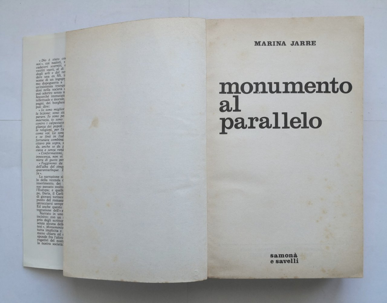MONUMENTO AL PARALLELO di Marina Jarre 1968 Samonà e Savelli libro romanzo | Libri antichi e moderni |