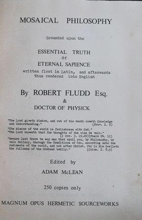 MOSAICAL PHILOSOPHY. Grounded upon the Essential Truth or Eternal Sapience.� Written first in latin, and afterwards thus rendrerd into English. Edited by Adam McLean. 250 copies only. | Libri antichi e moderni | Fludd, Robert.