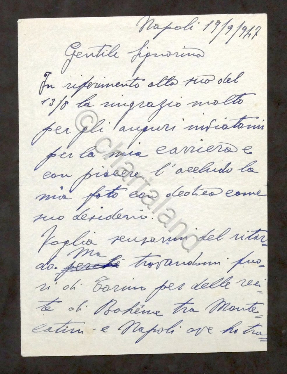 Musica Lirica - Lettera autografa del tenore Alfredo Varnetti - 1947 Un foglio scritto su tre facciate - Dimensioni: 14 x 19 cm ca. Condizioni buone.