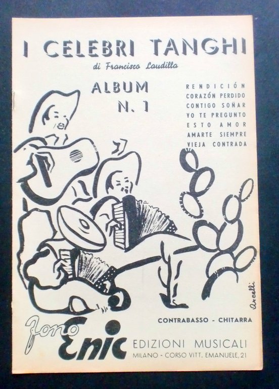 Musica Spartito - I celebri tanghi - Album N° 1 - Contrabbasso Chitarra - 1954