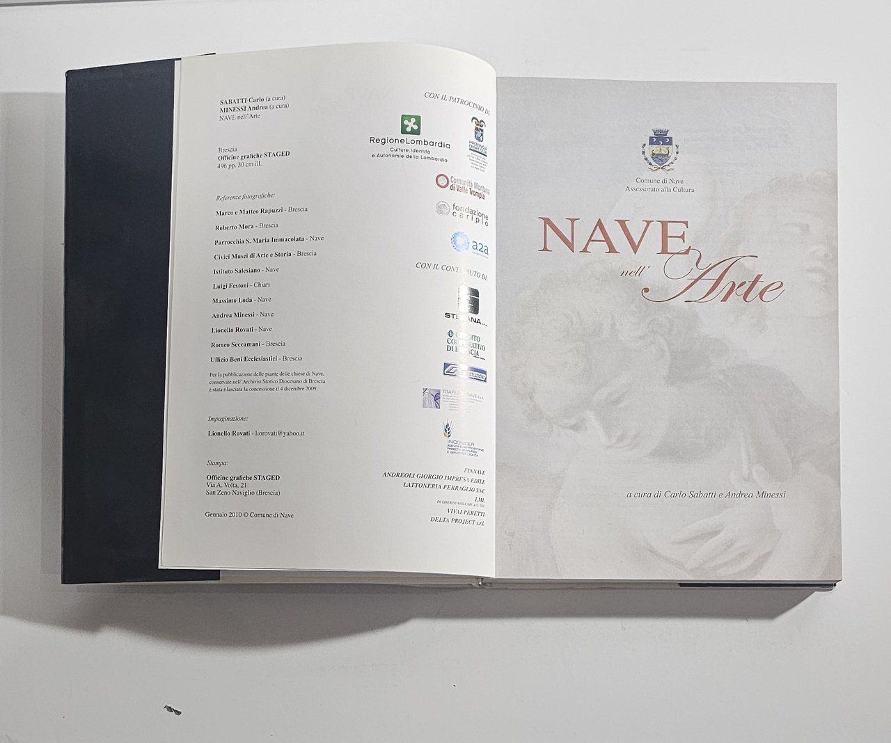 Dettagli:- Titolo: Nave nell'Arte- Curatori: Carlo Sabatti, Andrea Minessi- Luogo: Nave (Brescia)- Editore: Comune di Nave- Anno: 2010 circa- Tipologia: catalogo d'arte / storia locale- Contenuti: arte sacra, chiese, scultura, pittura- Illustrazioni: numerose a colori