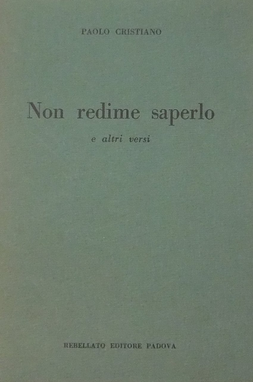 Non redime saperlo e altri versi | Libri antichi e moderni | Cristiano Paolo
