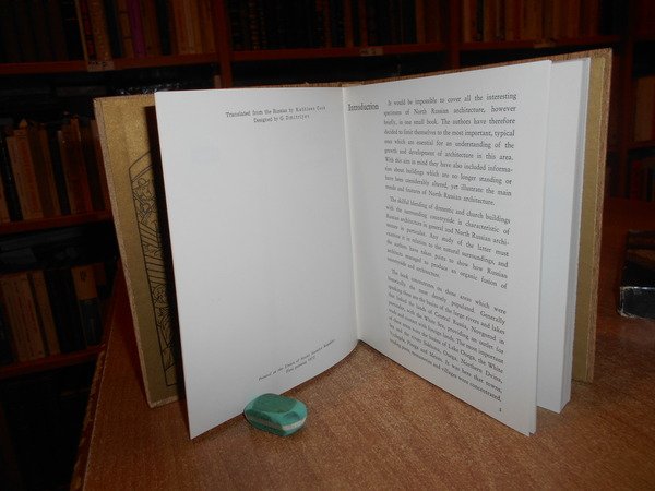 North Russian Architecture. Translated from the Russian by Kathleen Cook. Printed in the Union of Sovietic Socialist Republics, 1972. In-16° grande, cartonato edit. con impressione in oro sul piani e titolo in oro al dorso. 322, (1) pp. con numerose illustrazioni fotografiche anche a colori n.t. Libro come nuovo. Astuccio in cartoncino flessibile con segni del tempo. Ottimo stato con testo in inglese. Neg. mob. nero 20 carc.