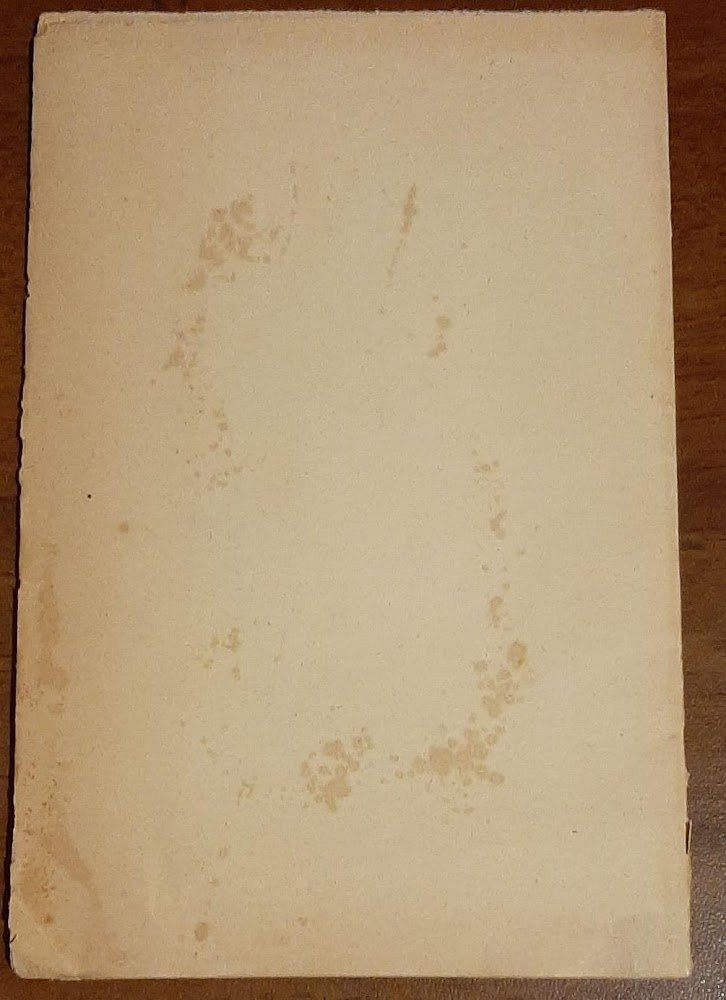 Copertina: cartonata, ingiallita. Legatura: artigianale. Dorso: scolorito. Taglio: ingiallito, sporco, irregolare in modo lieve. Sguardi: ingialliti. Frontespizio: ingiallito. Pagine testo: ingiallite, brunite ai margini. Margini delle pagine: ingialliti. . Buono (Good) .