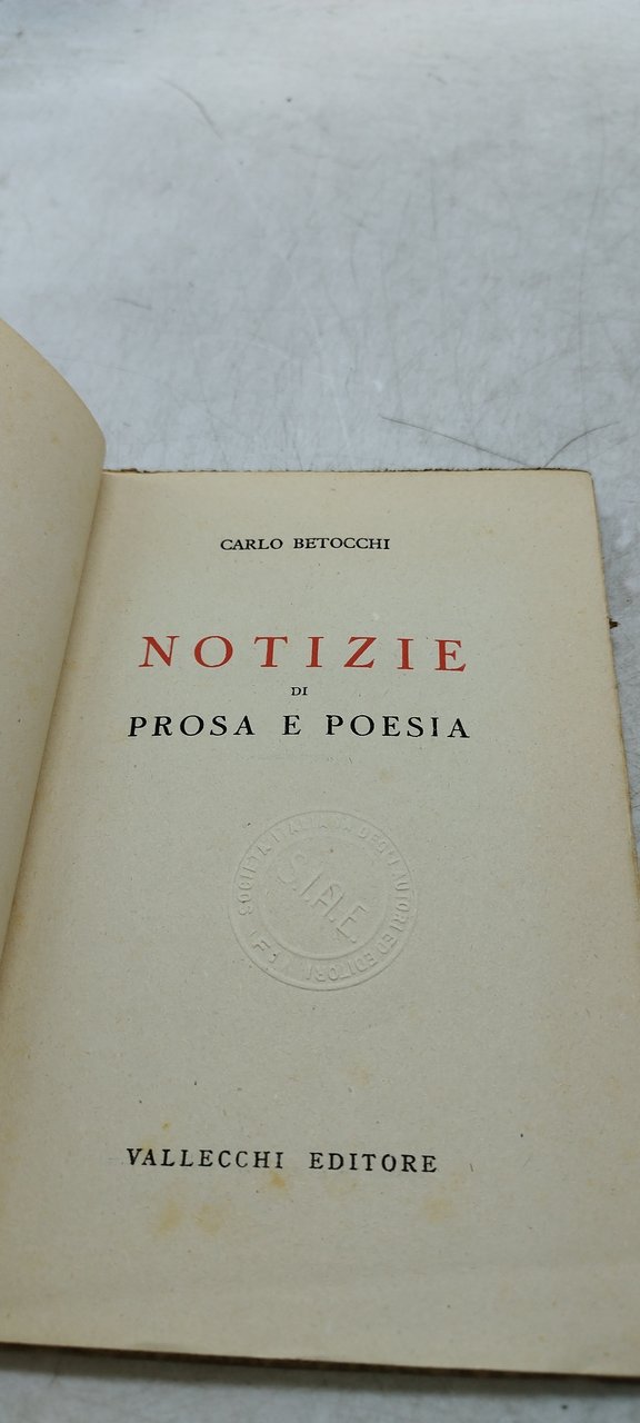 notizie di prosa e poesia | Libri antichi e moderni | carlo betocchi