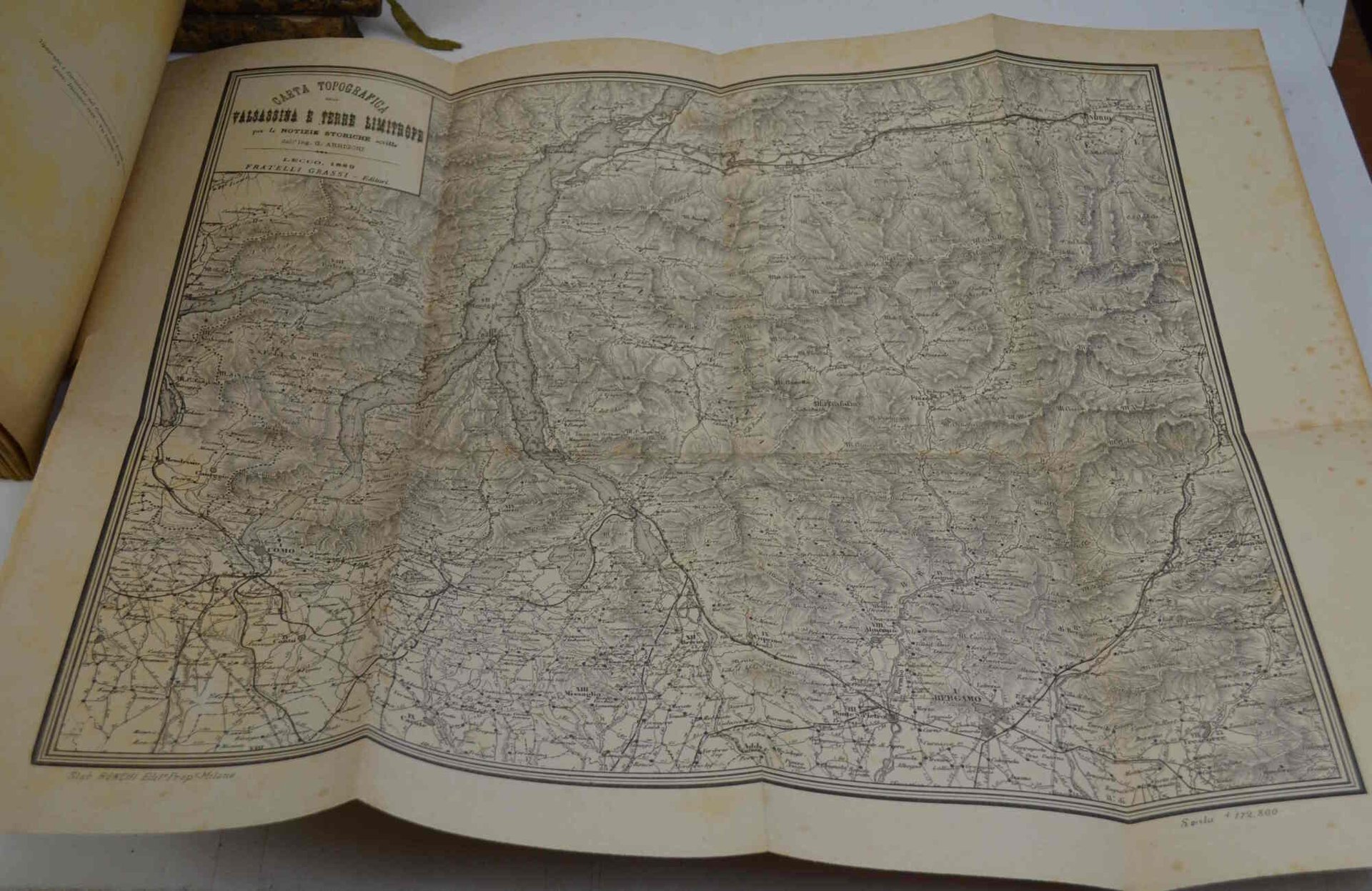 Cm. 24, pp. vii (1) 358 (2). Con in fine una grande carta topografica della Valsassina e zone limitrofe incisa e più volte ripiegata. Brossura originale con titoli a stampa. Piatto posteriore mancante, peraltro esemplare genuino ed in buono stato di conservazione. Seconda edizione apparsa ben 49 anni dopo l'originale.