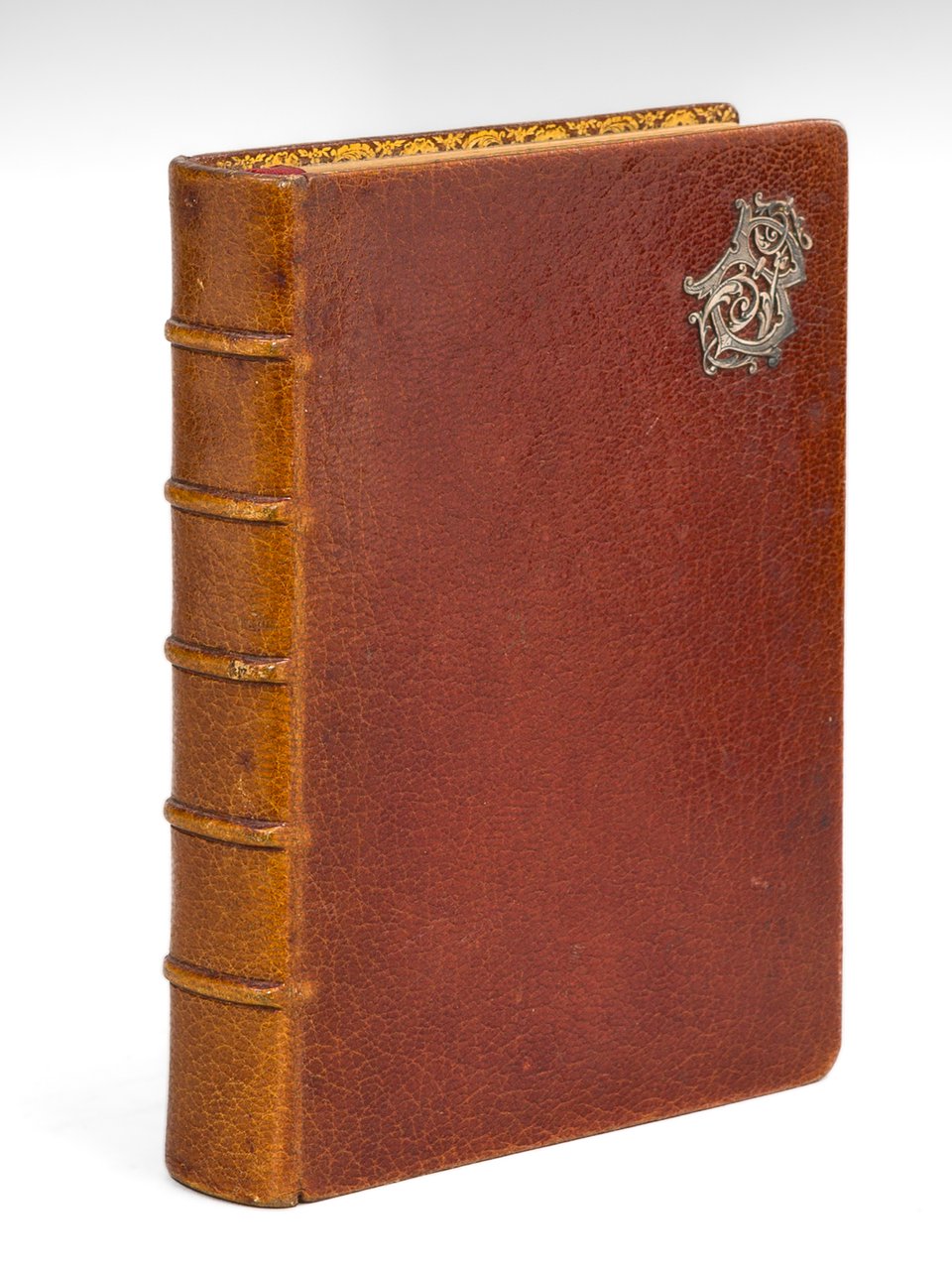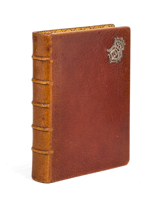 1 vol. in-12 reliure plein maroquin brun, dos à 5 nerfs, chiffre métallique au premier plat, coupes et chasses ornées, gardes moirées, reliure signée Bouasse-Lebel & Massin, Gruel et Engelmann, Paris, s.d. [ circa 1885 ], 2 ff., 176 pp. et 3 ff., 2 ff. blancs Très charmant recueil de prières ornée en chromolithographie. Bon état (rel. très lég. frottée, petit usure en garde moirée, bon exemplaire par ailleurs)