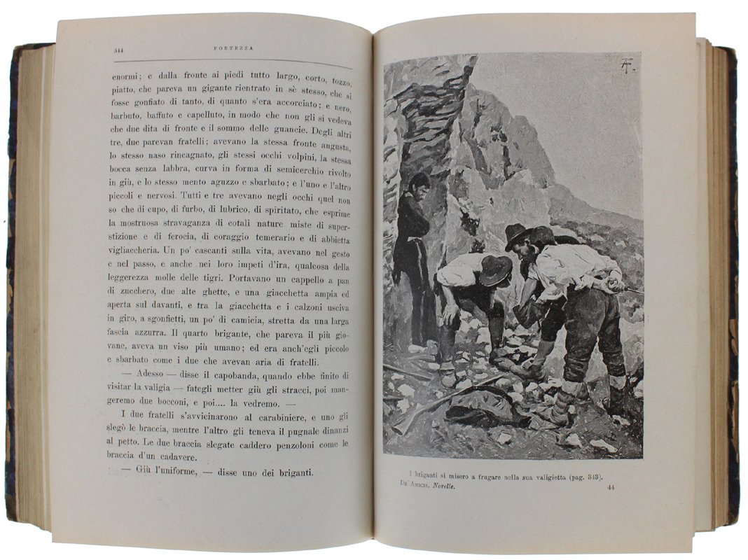 (Codice LC/1167) In 8º (246,5x17,5 cm) IV-389 pp. Contiene: Gli amici di collegio - Camilla - Furio - Un gran giorno - Alberto - Fortezza - La casa paterna. Con belle illustrazioni, anche a piena pagina. I Segue rilegato nello stesso volume: GARIBALDI - LA SUA VITA NARRATA AI GIOVANI, Milano, Treves, 1910, 200 pp. Illustrato con 52 disegni di Ed. Matania e in appendice "i monumenti a Garibaldi", 23 tavole fuori testo. Di questa seconda opera è stata conservata la bella copertina in cromolitografia, applicata all'interno del piatto posteriore. Mezza tela del tempo con qualche segno di usura, titolo oro al dorso. Interrno in ottimo stato. ~~~ SPEDIZIONE IN ITALIA SEMPRE TRACCIATA